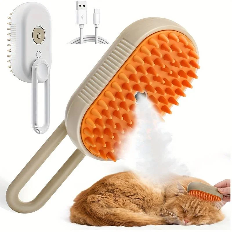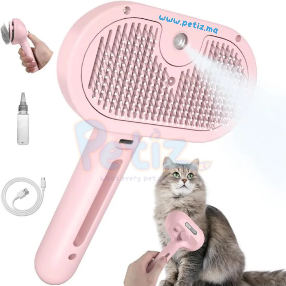 Brosse à Vapeur pour Chat et Chien – Toilettage 3 en 1 avec Pulvérisation, Lumière UV et Extraction Facile des Poils