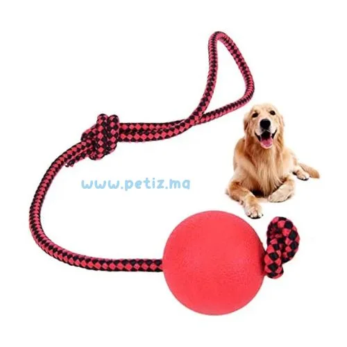 Balle en Caoutchouc Solide avec Corde en Nylon Durable pour Chien – Jouet Résistant , Exercice Musculaire et Dressage