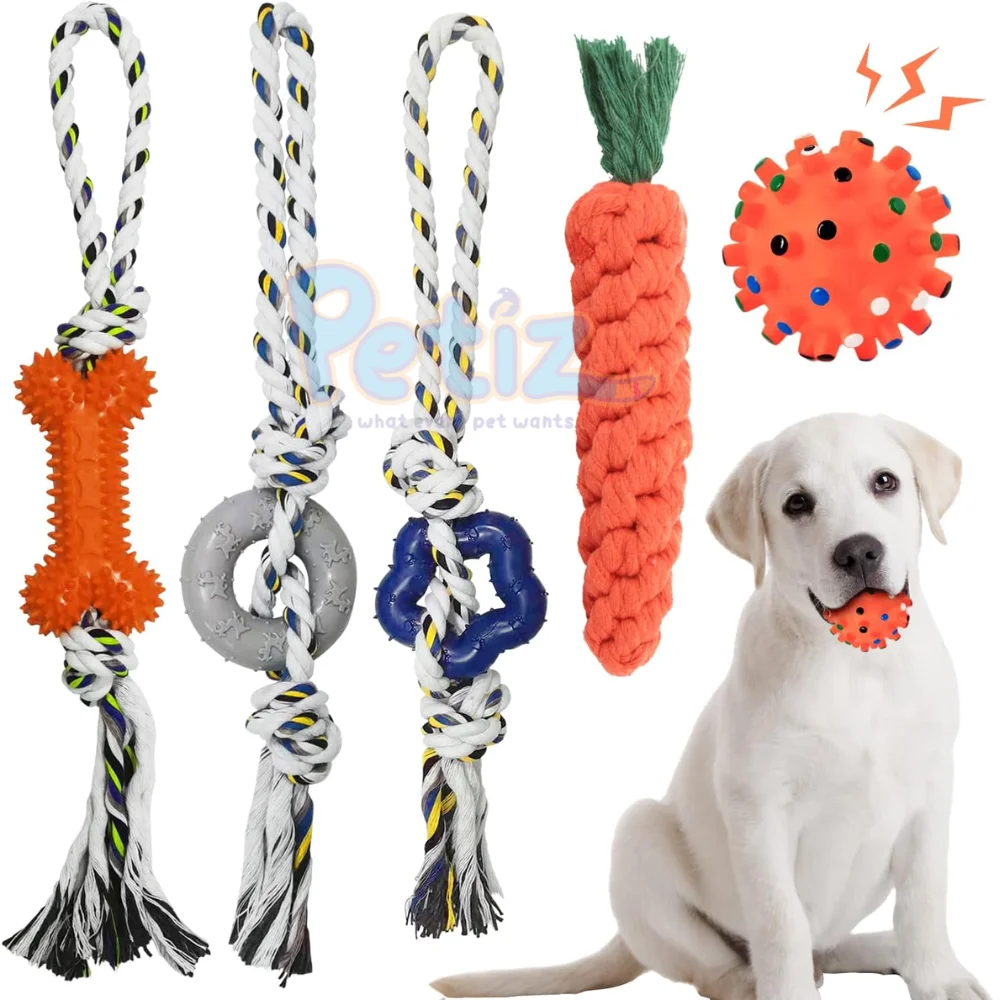 Jouet à Mâcher pour Chiot et Petit Chien – Corde Tressée et Caoutchouc Souple pour Dents Saines et Jeu Actif